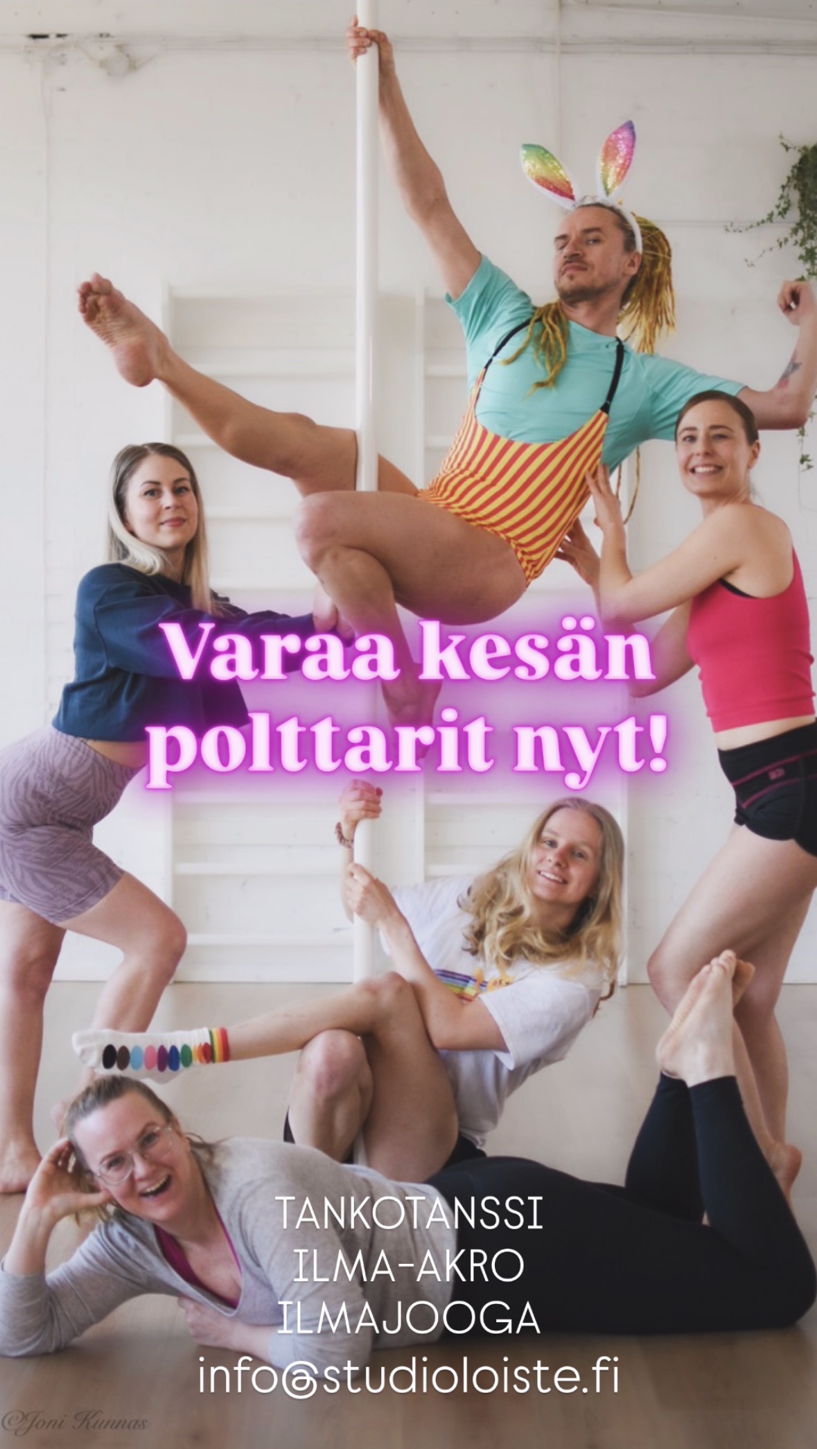Tervetuloa kokeilemaan ryhmiimme! Lasten ja nuorten tutustumistunti on aina ilmainen ja se ei sido vielä mihinkään. Tarjolla on tankotanssia ja ilma-akrobatiaa. Tiedustelut info@studioloiste.fi.